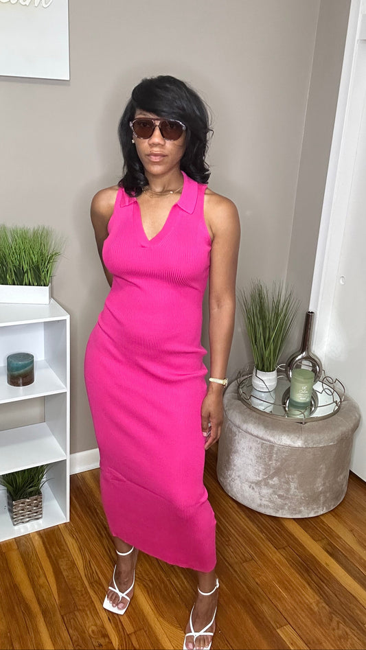 V-Neck Ribbed Dress