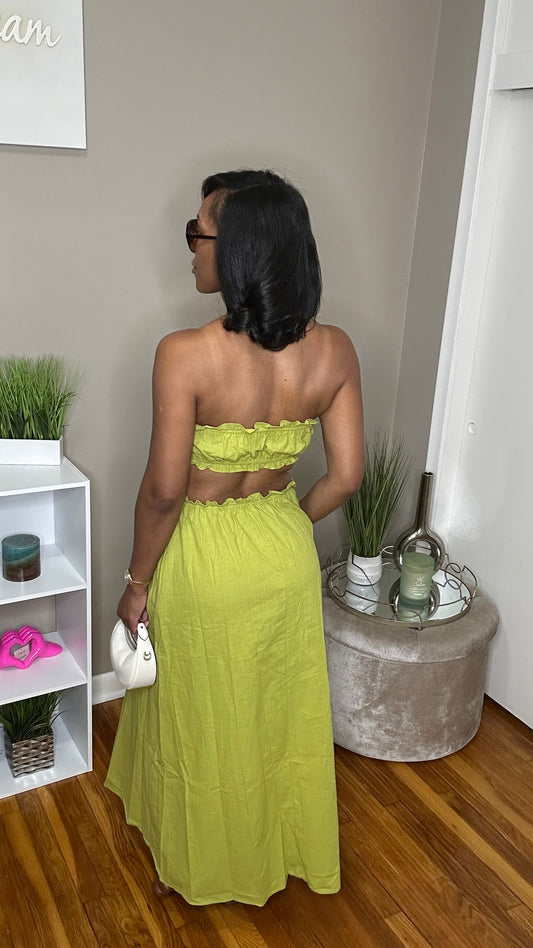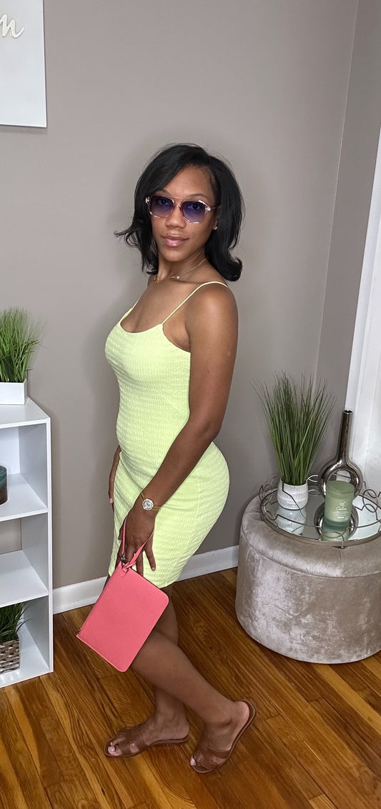 Lime Crinkle Mini Dress